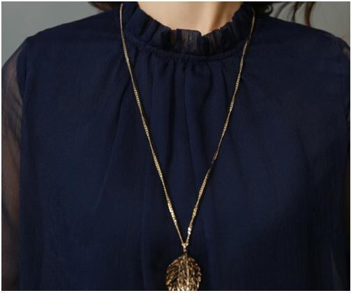 No.8930 Mサイズ ネイビー レディース ブラウス シフォン 長袖 シースルー フォーマル シャツ ハイネック フリル 透け感