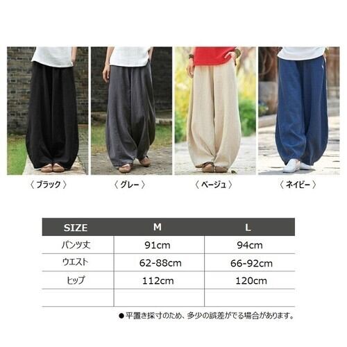 ぽってり とろみ のコクーンシルエットがカワイイ綿麻素材のワイドパンツです♪