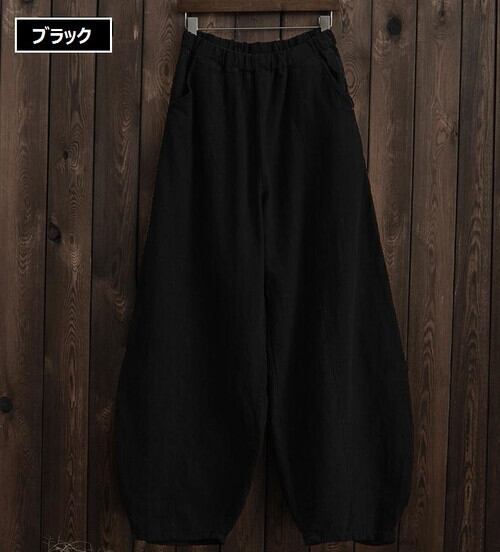 No.1811 M ブラック 綿麻 とろみ ワイドパンツ ゆるとろ 楽ちん コットンリネン ボトムス ウエストゴム 無地