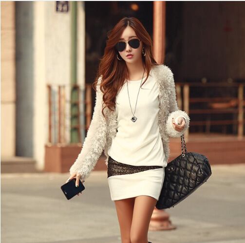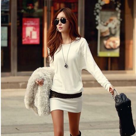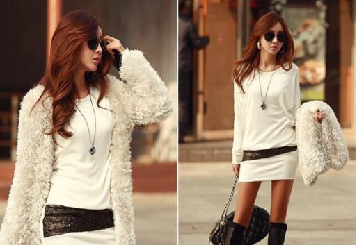 No.10054 ホワイト Mサイズ レディース セクシー チュニック スリム ワンピース ゴールド ラメライン