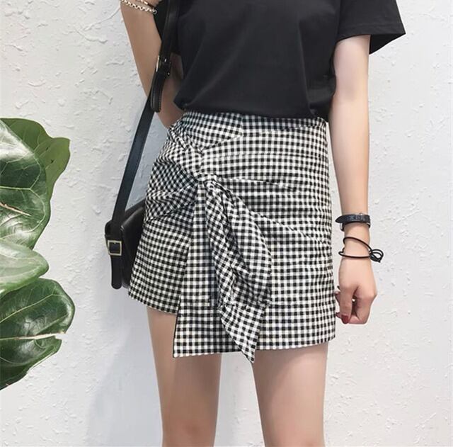 No.1822 チェック柄 韓国風 L 春の新しい レトロスタイル ハイウエスト キュロットスカート