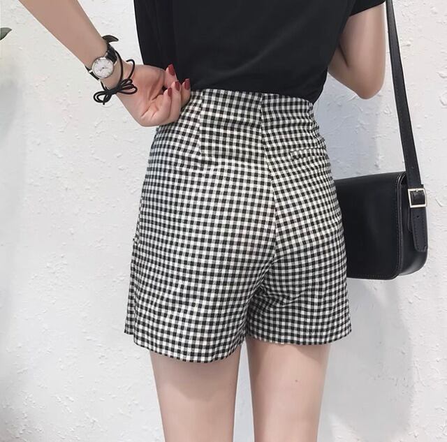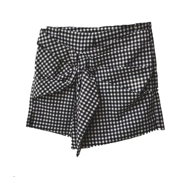 No.1820 チェック柄 韓国風 S 春の新しい レトロスタイル ハイウエスト キュロットスカート