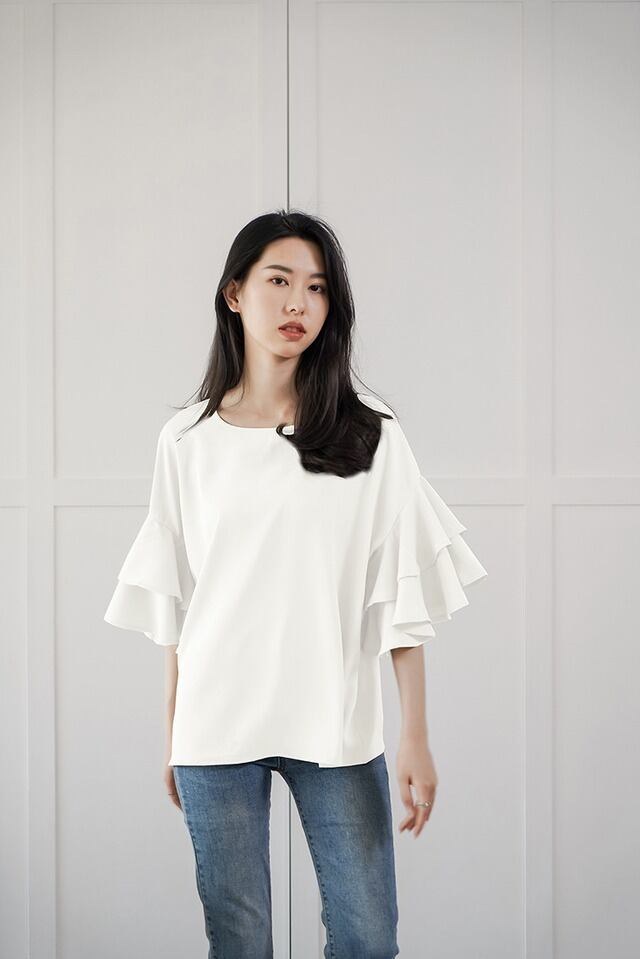 首元と袖にフリルデザインで甘すぎず、大人のかわいらしさを演出してくれます。