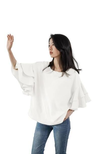 さらに、裾にかけて、ふわっと広がっているので、二の腕が細く見える効果もあります!