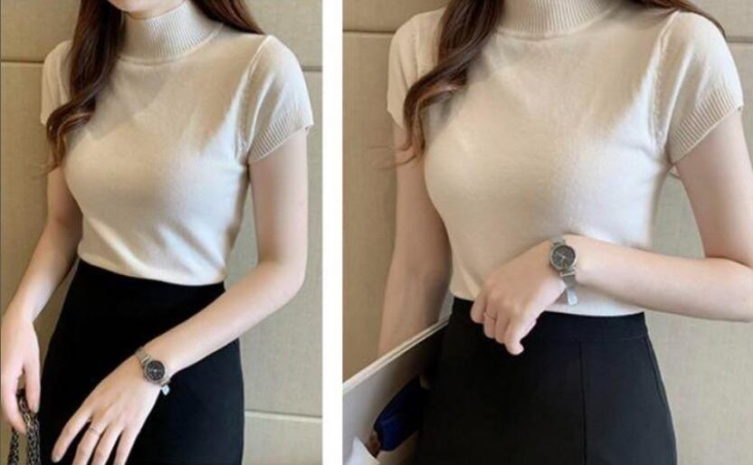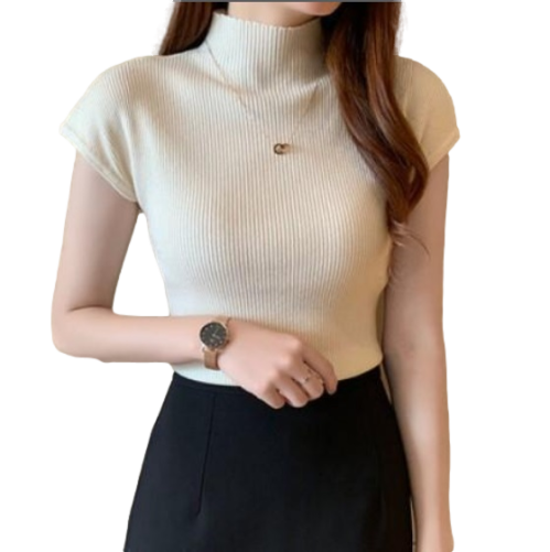 ハーフタートルネックが女性らしさを演出し、普段使いはもちろん、オフィスシーンにも合う、レディース ニットトップスです。